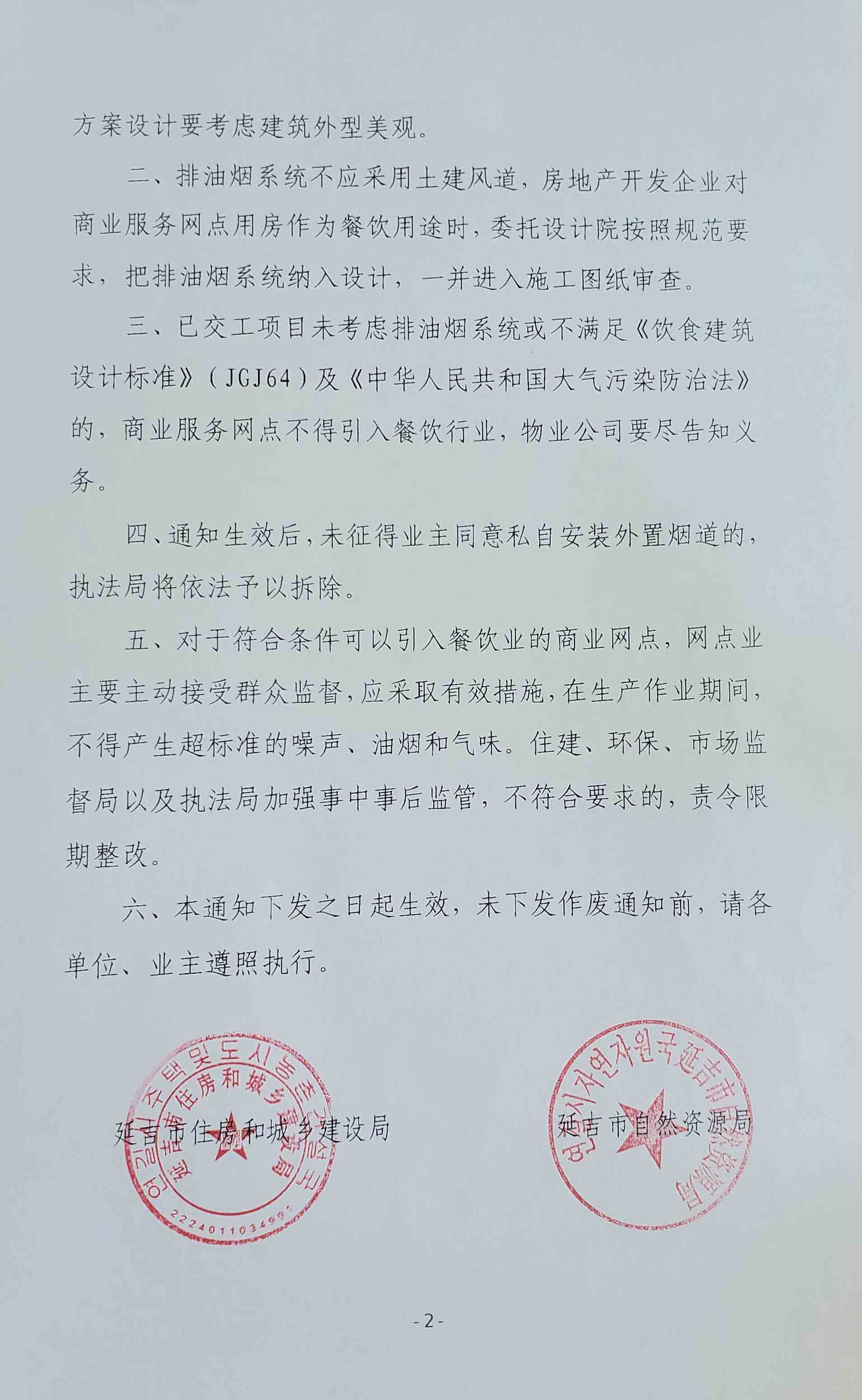 關于印發(fā)《規(guī)范延吉市商住兩用房商業(yè)服務網(wǎng)點煙汽排放管理辦法(試行)》的通知